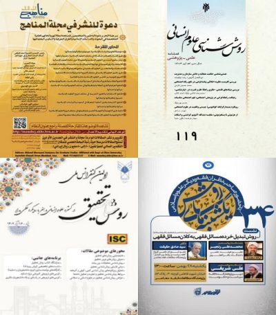 1. «نشریه روش شناسی علوم اسلامی»، سه زبانه، فراخوان دارد و حمایت مالی می کند. در حال اخذ رتبه علمی پژوهشی، سردبیر: احمد مبلغی، دفتر تبلیغات