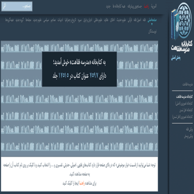 طبق اطلاعات ارائه شده در صفحه اصلی، کتابخانه مدرسه فقاهت دارای ۷۵۹۷ عنوان کتاب در ۱۷۵۱۵ جلد است. - منابع تخصصی مطالعات اسلامی: